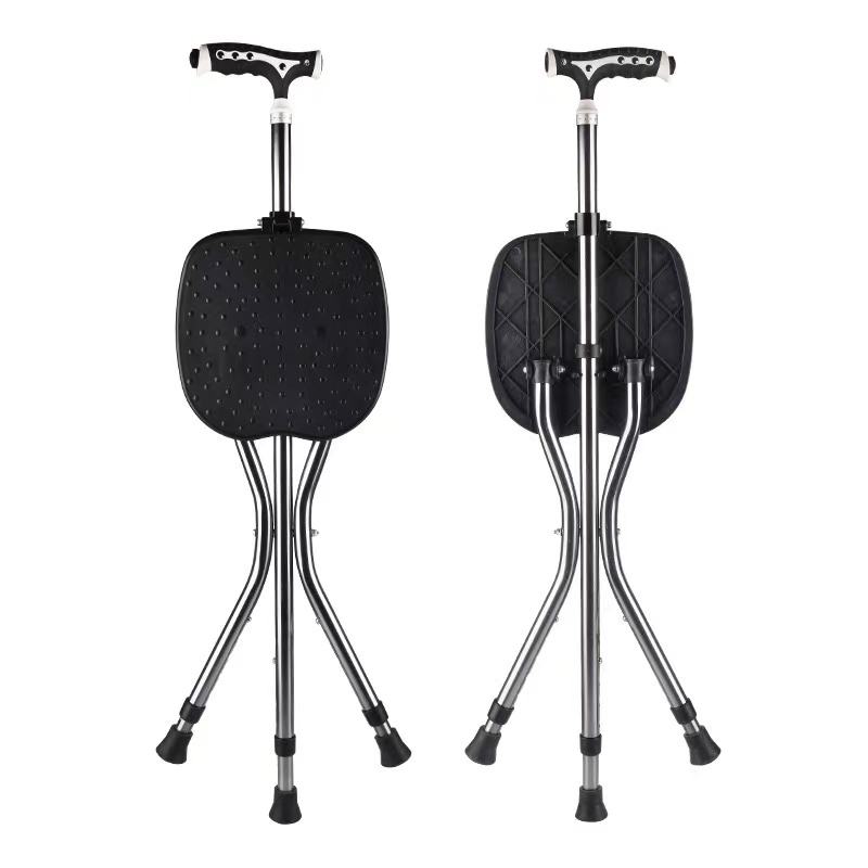 ไม้เท้าปรับระดับได้พร้อมเก้าอี้พับได้ ทำจากอลูมิเนียมอัลลอยด์ ยี่ห้อ ICM Hot Sale ขนาด 85-95 ซม. สำหรับผู้สูงอายุ