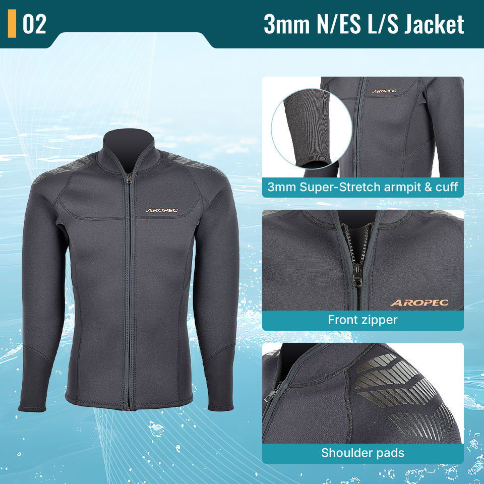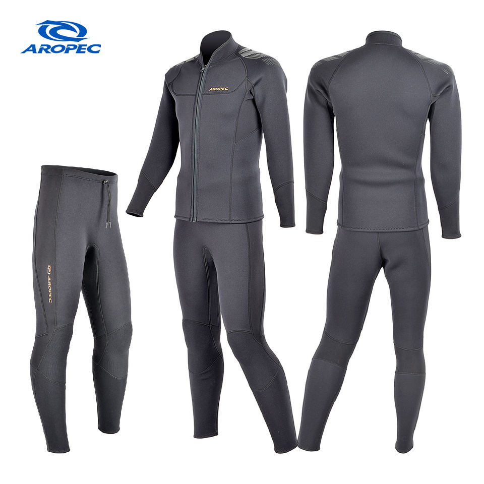 เสื้อแจ็คเก็ตนีโอพรีน 3 มม. สำหรับผู้ชาย Aropec ลดราคาพิเศษ ชุดดำน้ำ 2 ชิ้น กันน้ำ กันรังสียูวี และกันลม พิมพ์ลายโลโก้ด้านหน้าด้วยเทคนิคซิลค์สกรีน พร้อมจัดส่ง