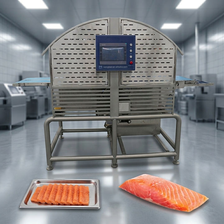 เครื่องหั่นเนื้อปลาแซลมอนรมควันอัตโนมัติจากโรงงานจีน ลดราคาพิเศษ เครื่องตัดอกไก่ เครื่องหั่นปลาสด
