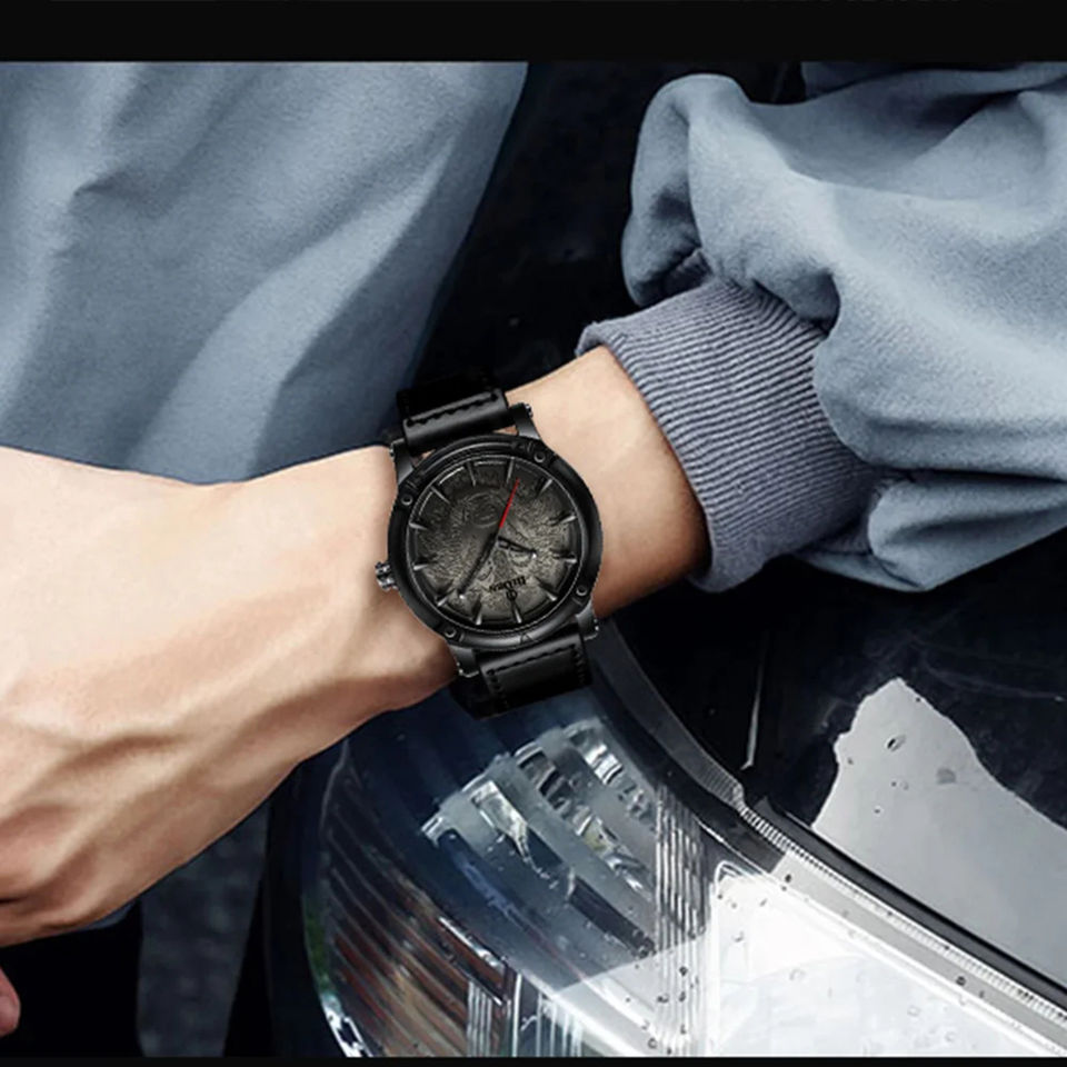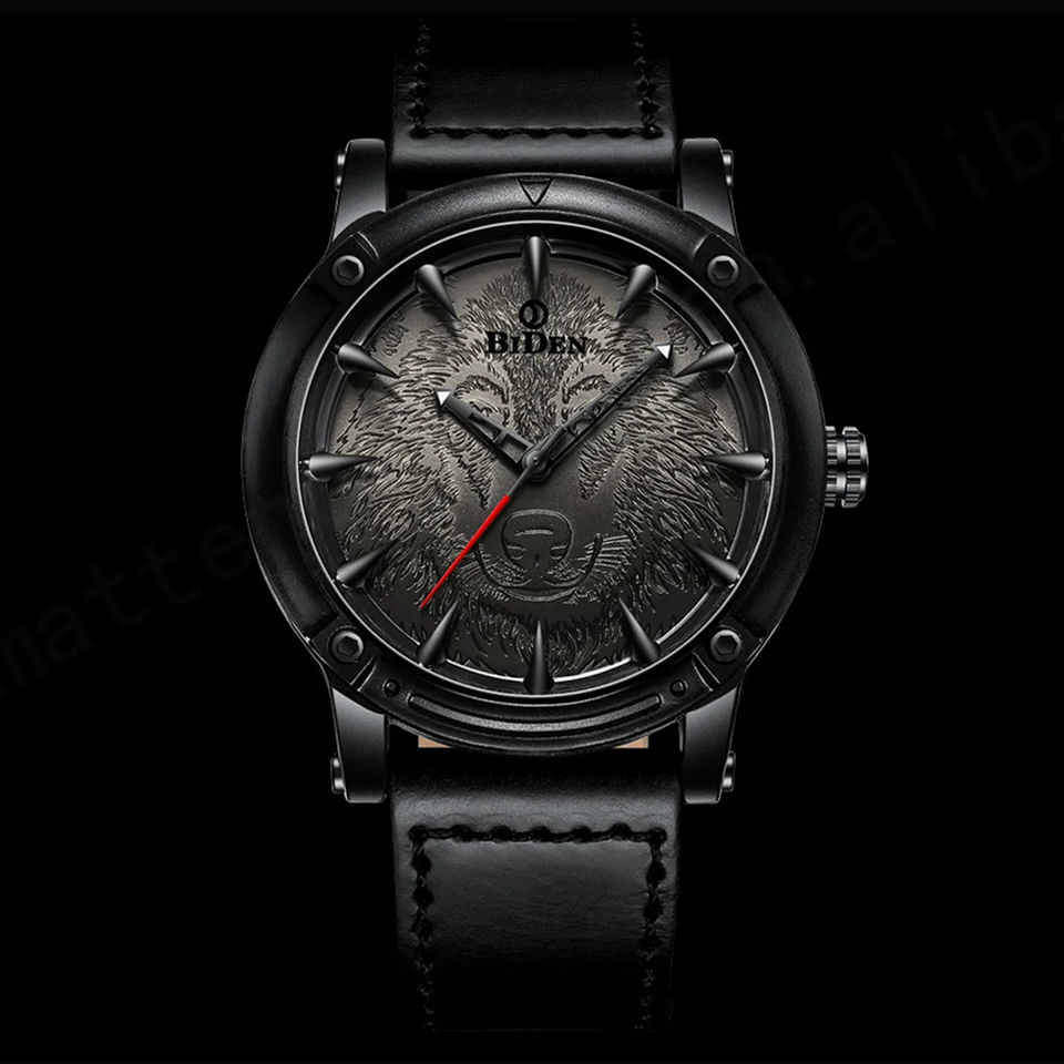 Hot Sale BIDEN 0185 Business Men's Quartz Movement Watch Creative Wolf Sport Design Genuine Leather Strap Glass Pointer 2025