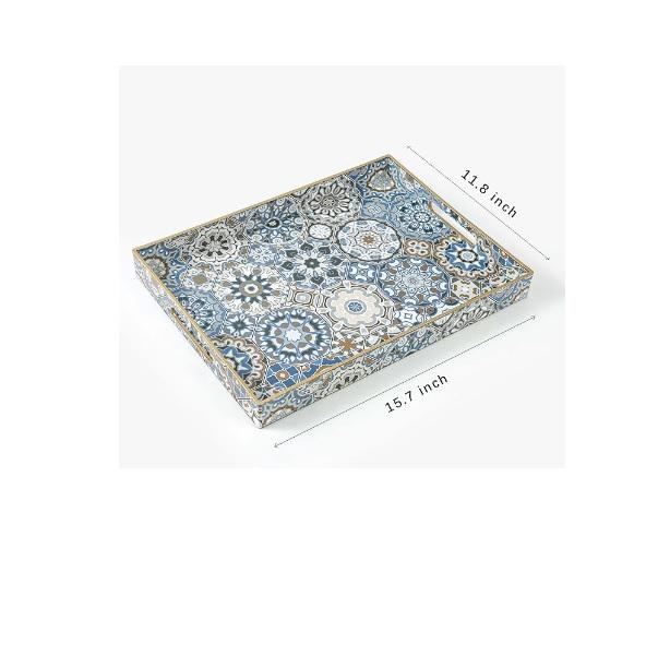 ถาดวางของข้างโต๊ะกาแฟทรงสี่เหลี่ยมลายดอกไม้สวยงาม ลดราคาพิเศษ พร้อมหูจับ ถาดขนาดใหญ่สำหรับโต๊ะกาแฟ