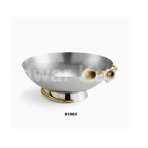 ชามใส่ผลไม้อลูมิเนียมสีเงินตกแต่งโต๊ะรับประทานอาหารห้องครัว
