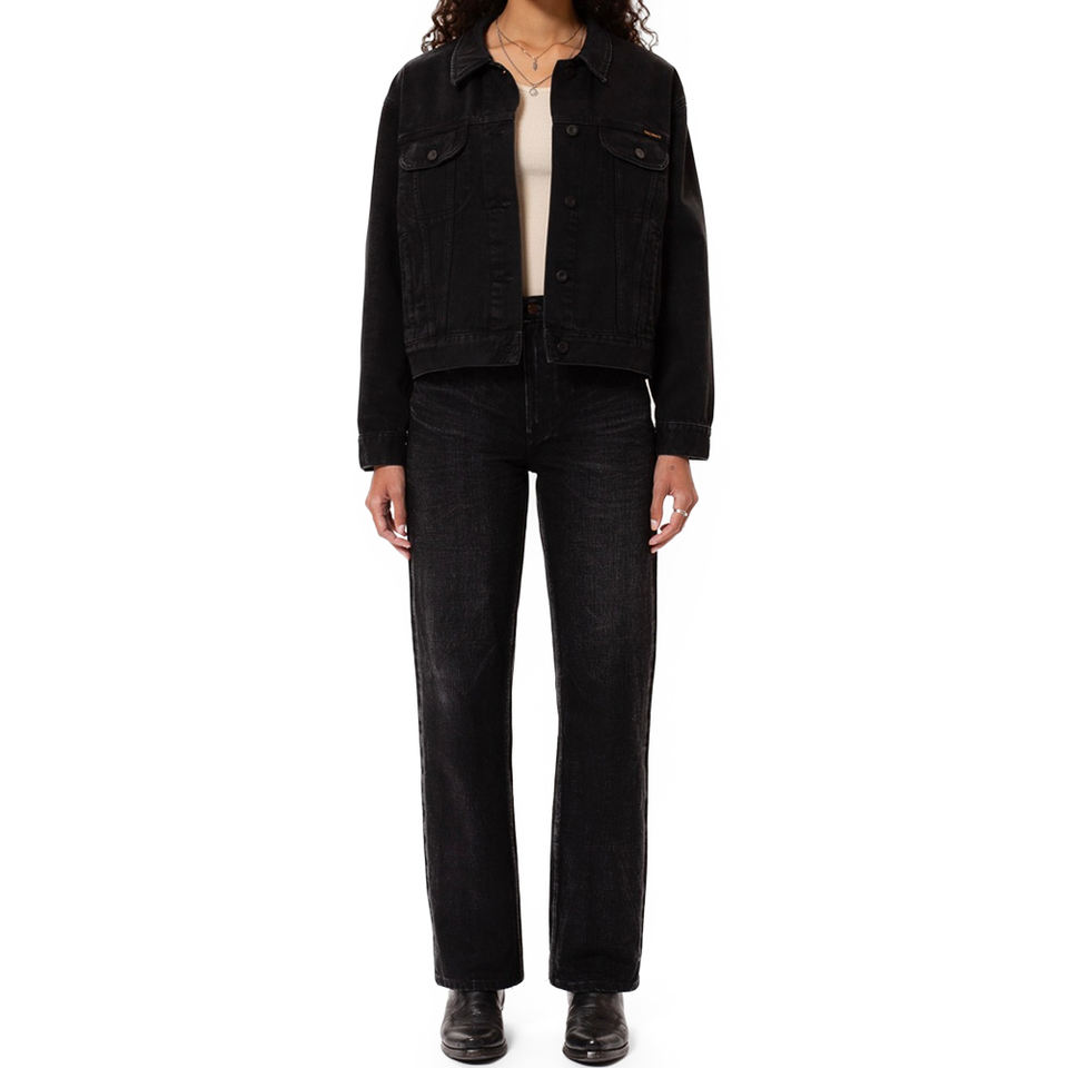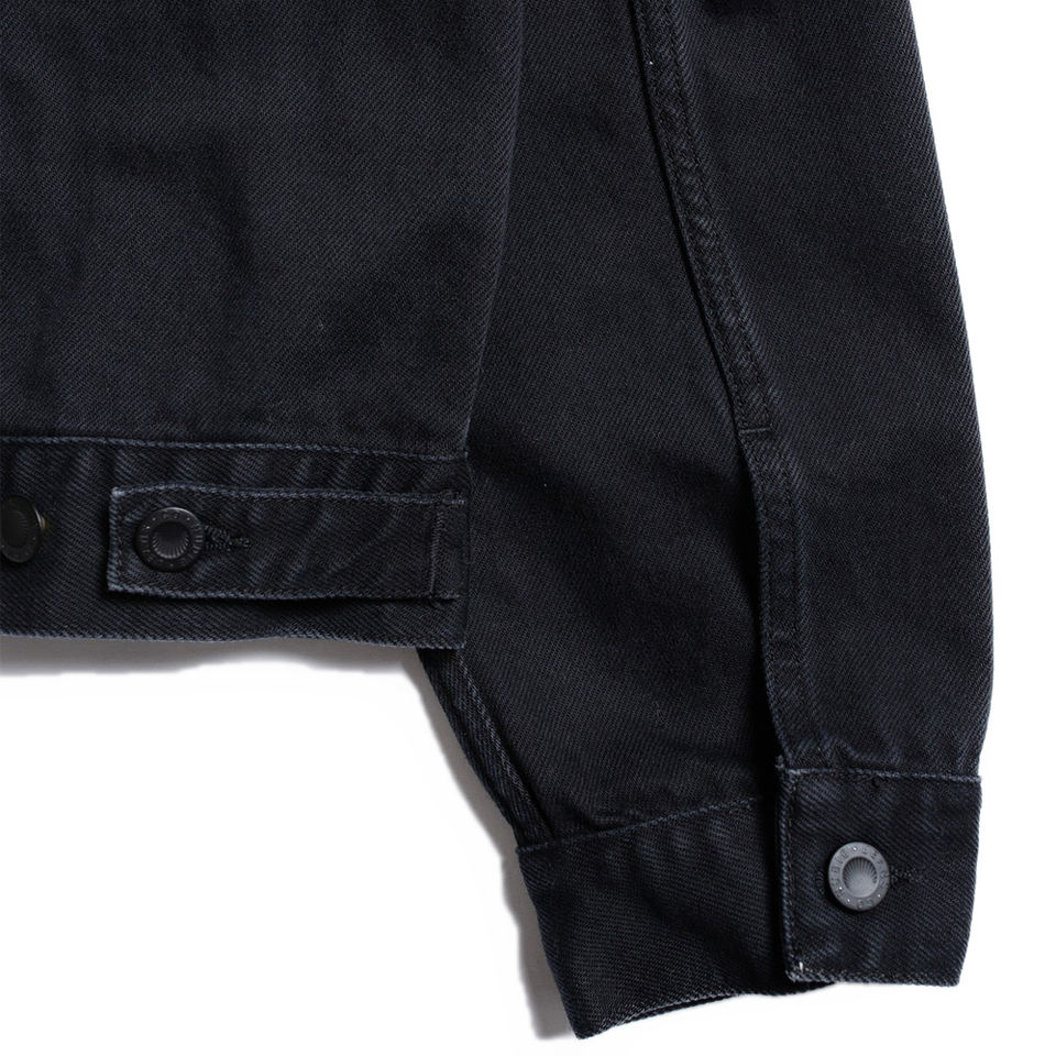 แจ็คเก็ตยีนส์ครอปผู้หญิง Berit สีดำ Asphalt สไตล์วินเทจ ล้างแบบพิเศษ สตรีทแวร์ลำลอง รับผลิตตามแบบ (OEM) ขั้นต่ำในการสั่งซื้อน้อย ผู้ผลิต 100% ของแท้