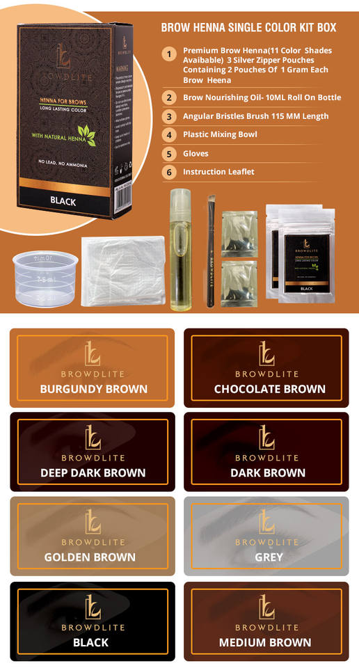 ชุดแต่งหน้ากึ่งถาวรพร้อมผงเฮนน่าแบบไม่ติดคิ้วสีสำหรับแต่งคิ้ว