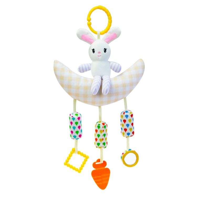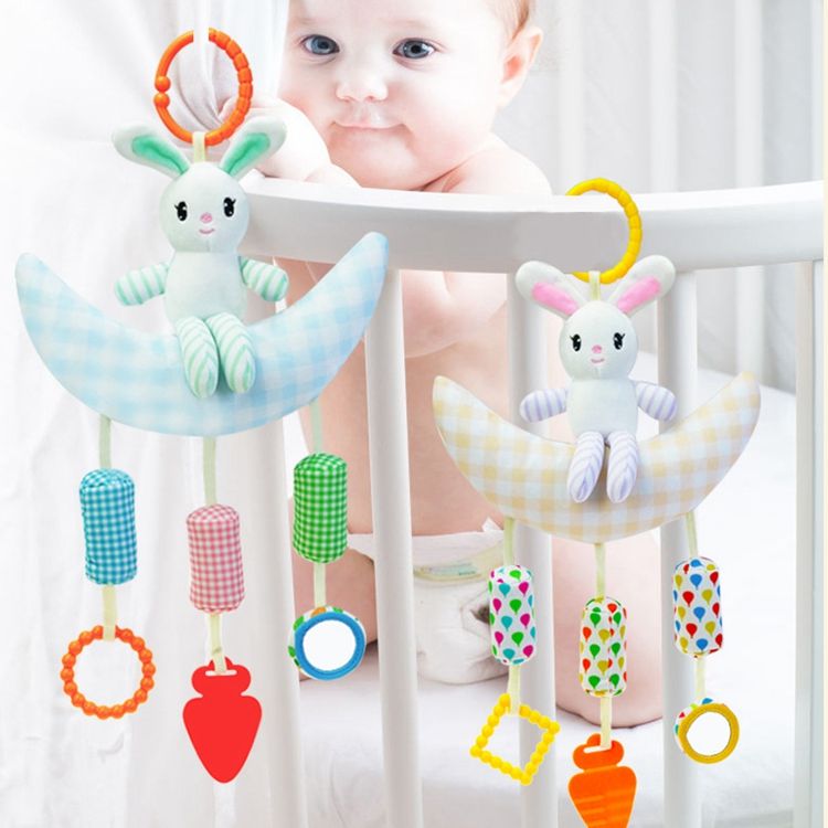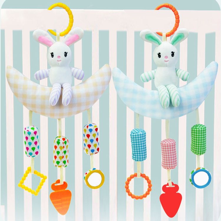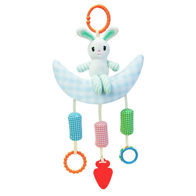 ของเล่นตุ๊กตากระต่ายพระจันทร์สีเหลืองสีฟ้าของเล่นนุ่มสำหรับเด็กสำหรับกัดเล่นและเขย่าแล้วมีเสียงสำหรับ0ถึง24เดือน