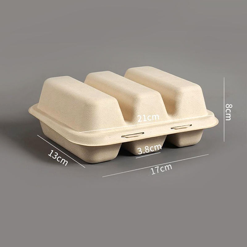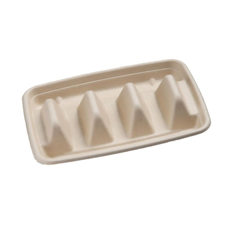 Hot Sale Biodegradable Disposable Self Erecting Taco Holder Tray Handle Sugarcane Pulp Paper Plate for Take-Away Food Packaging