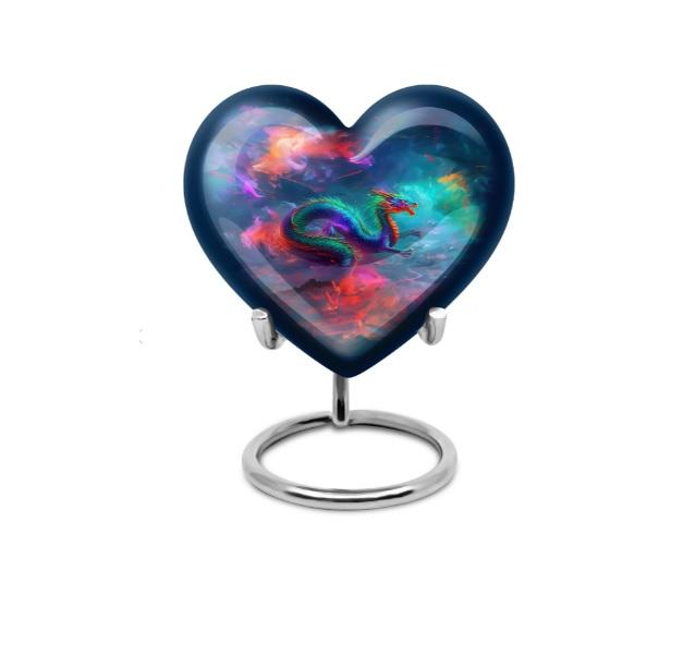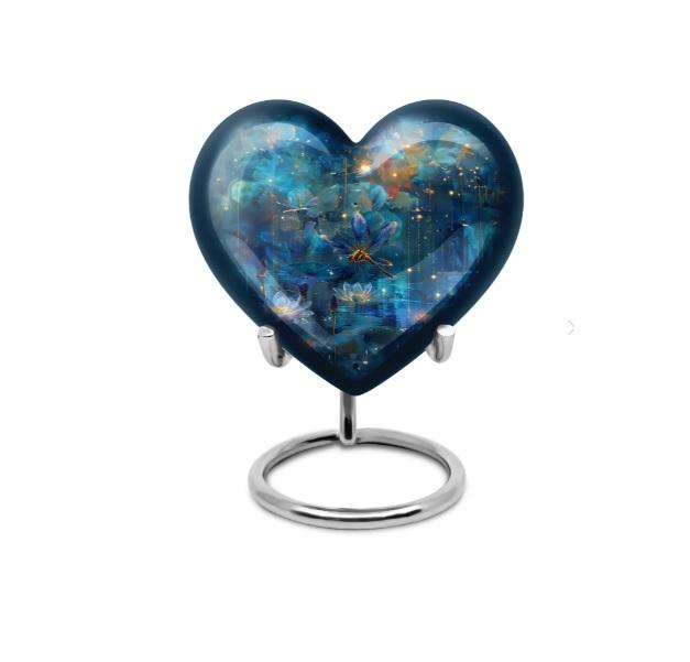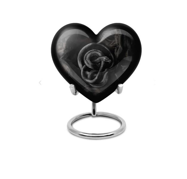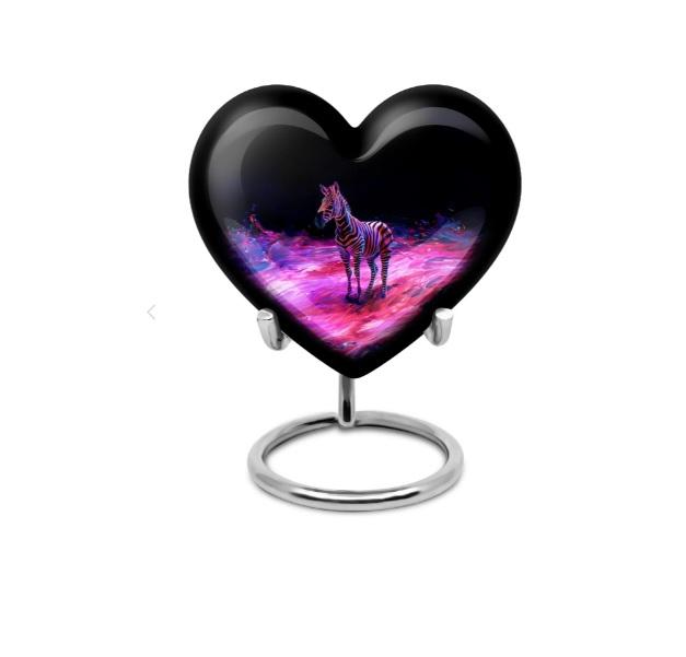 โกศบรรจุอัฐิรูปหัวใจโลหะสีดำลายม้าลาย ลดราคาพิเศษ พร้อมฐานตั้งและถุงกำมะหยี่ฟรี