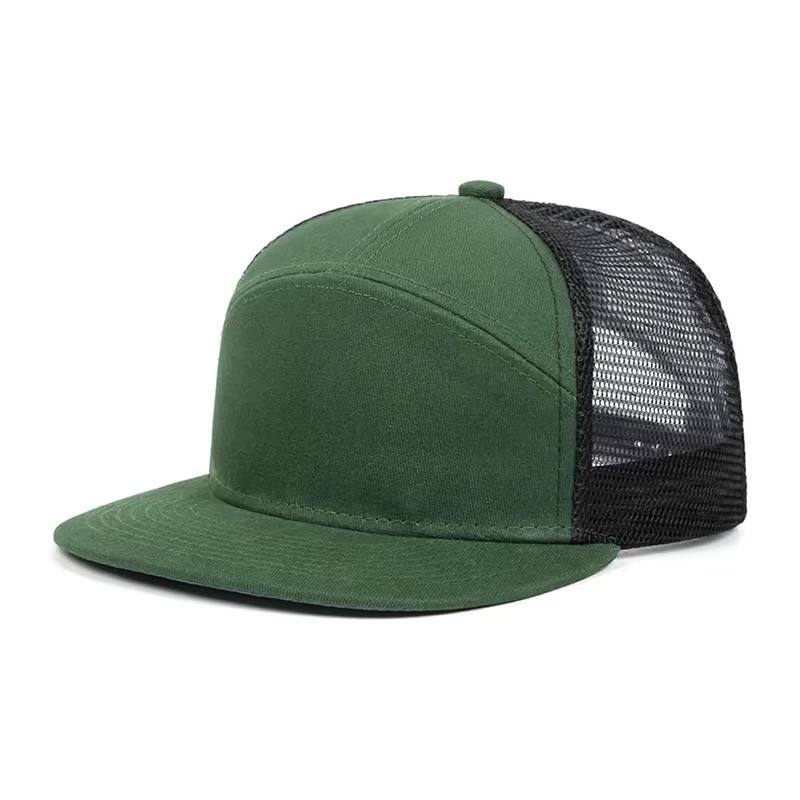 หมวกแก๊ปตาข่ายปีกแบน7แผงพิมพ์ลายโลโก้ตามสั่งสำหรับฤดูร้อน