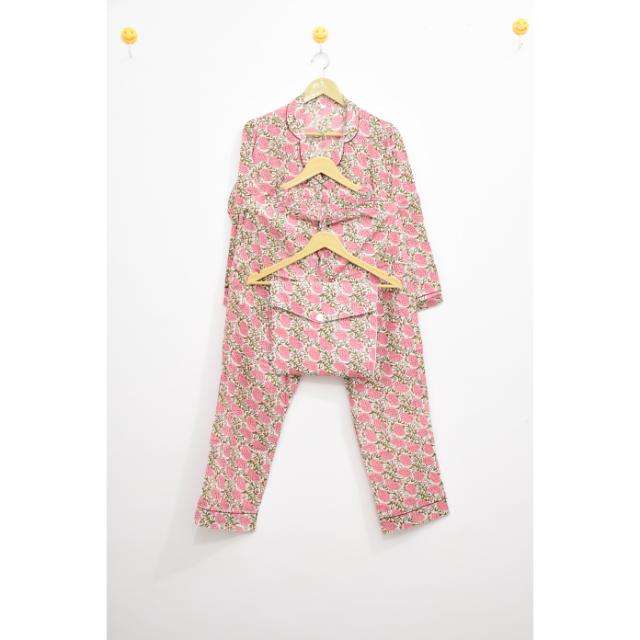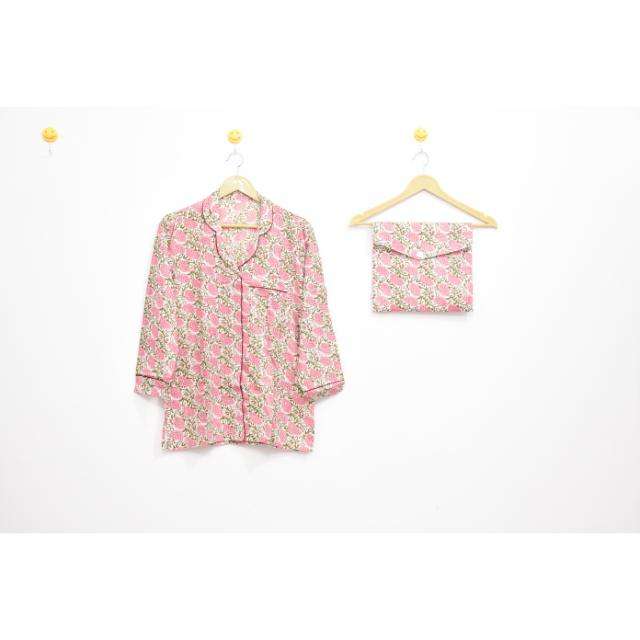 ชุดนอนผ้าฝ้ายลายดอกไม้สีฟ้า ลดราคาพิเศษ พิมพ์ลายด้วยมือ ชุดนอนผู้หญิง ชุดนอนใส่สบาย