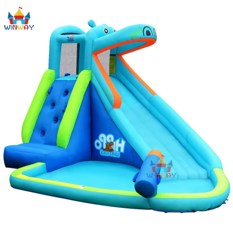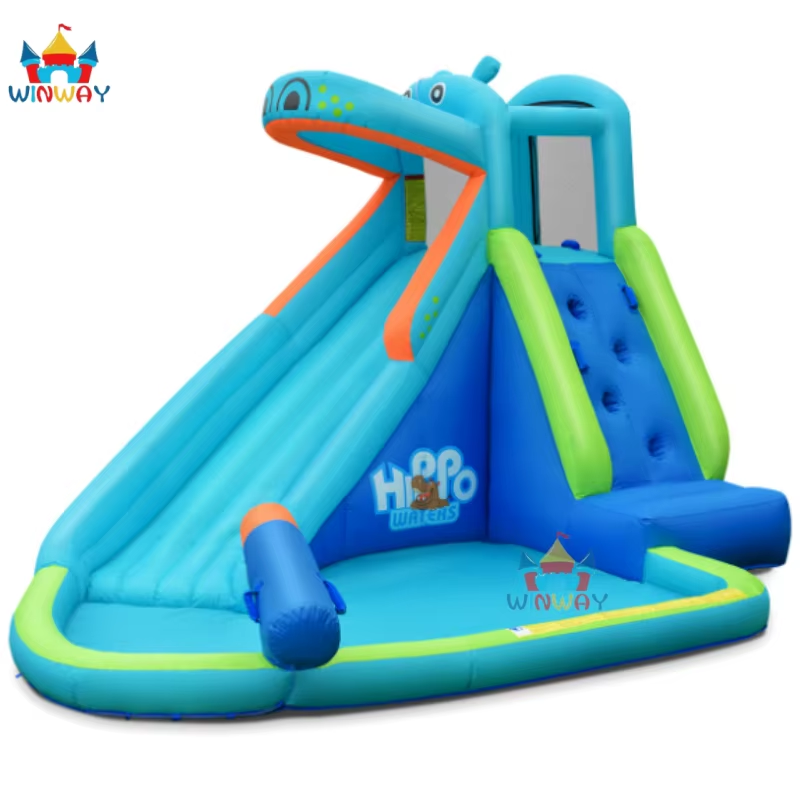 กระดานลื่นเป่าลม PVC ฮิปโปโปเตมัสสำหรับเด็กเล่นหรือเช่า