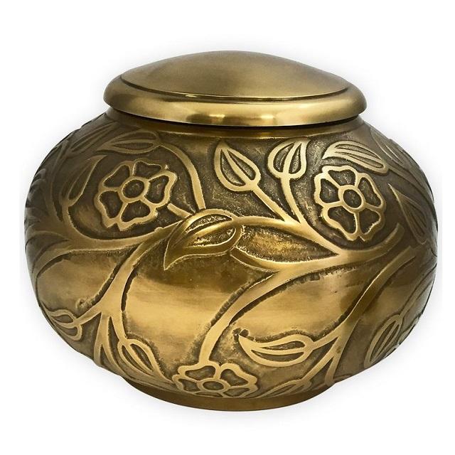 โกศทองเหลืองโบราณสำหรับใส่เถ้ากระดูกของมนุษย์ขี้เถ้าทองเหลืองทำด้วยมือแกะสลักลวดลายศพอุปกรณ์โกศ