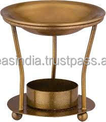 ที่ใส่น้ำมันหอมระเหยทองเหลืองและที่เผาขี้ผึ้งที่ใส่เทียนโลหะรูปทรงเรขาคณิตพร้อมชามทองเหลืองสำหรับทำสมาธิน้ำมันหอมระเหย