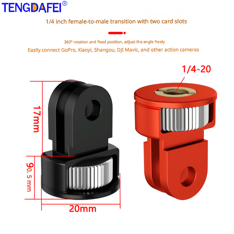 อุปกรณ์เสริมกล้องลดราคา ตัวแปลงสกรู 1/4 นิ้ว อะแดปเตอร์ขาตั้งกล้องขนาดเล็กสำหรับกล้องแอคชั่น Gopro11 Eken/Shadow Stone