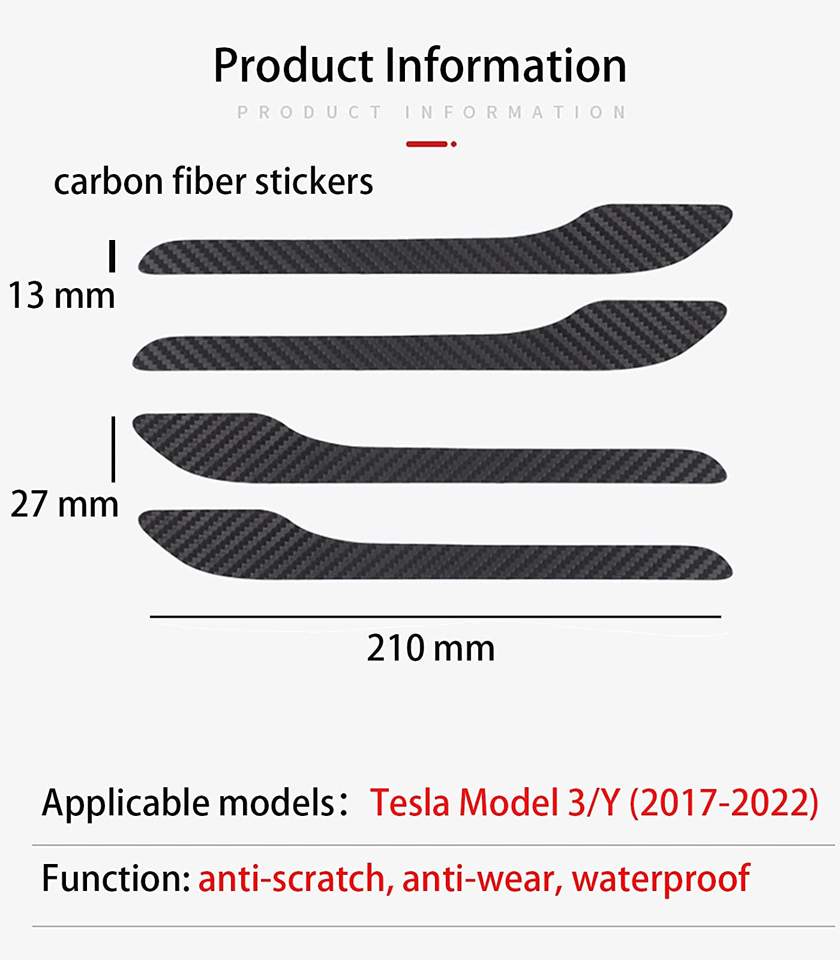สติ๊กเกอร์ติดมือจับประตูรถยนต์ลดราคา สำหรับ Tesla Model 3 ตกแต่งและป้องกันมือจับประตู