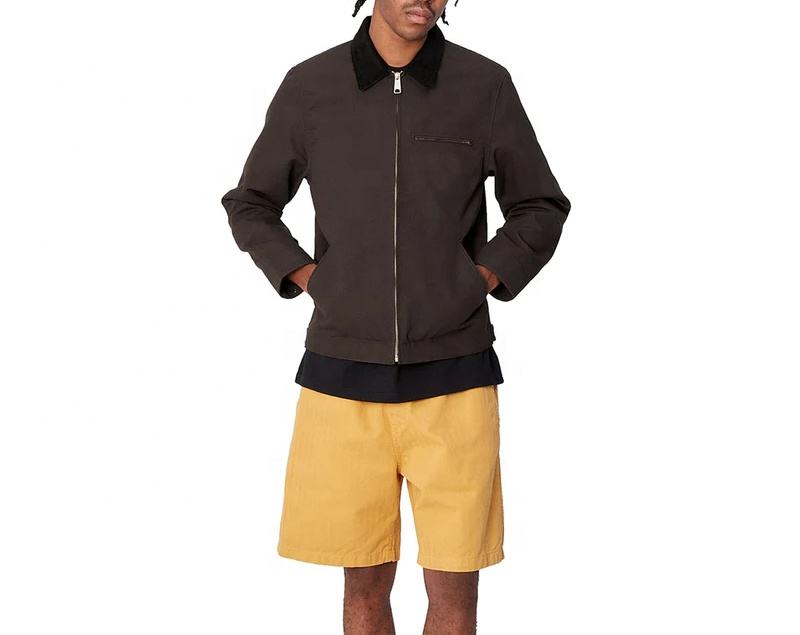 เสื้อโค้ทลำลองผู้ชายแบบมีซิปสำหรับฤดูใบไม้ผลิแจ็คเก็ตคนงานออกแบบได้เองพร้อมการตกแต่งด้วยผ้าแคนวาสสำหรับฤดูหนาว