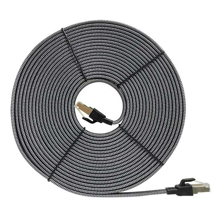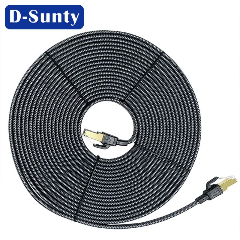 สายอีเธอร์เน็ต Cat8 แบบแบน 30AWG ความเร็ว 40Gbps 2000Mhz ความยาว 5 ม. 10 ม. สายแพทช์คอร์ด Cat 8 Rj45 แบบถัก SFTP สายแลนเน็ตเวิร์คแบบจัมเปอร์ ลดราคา