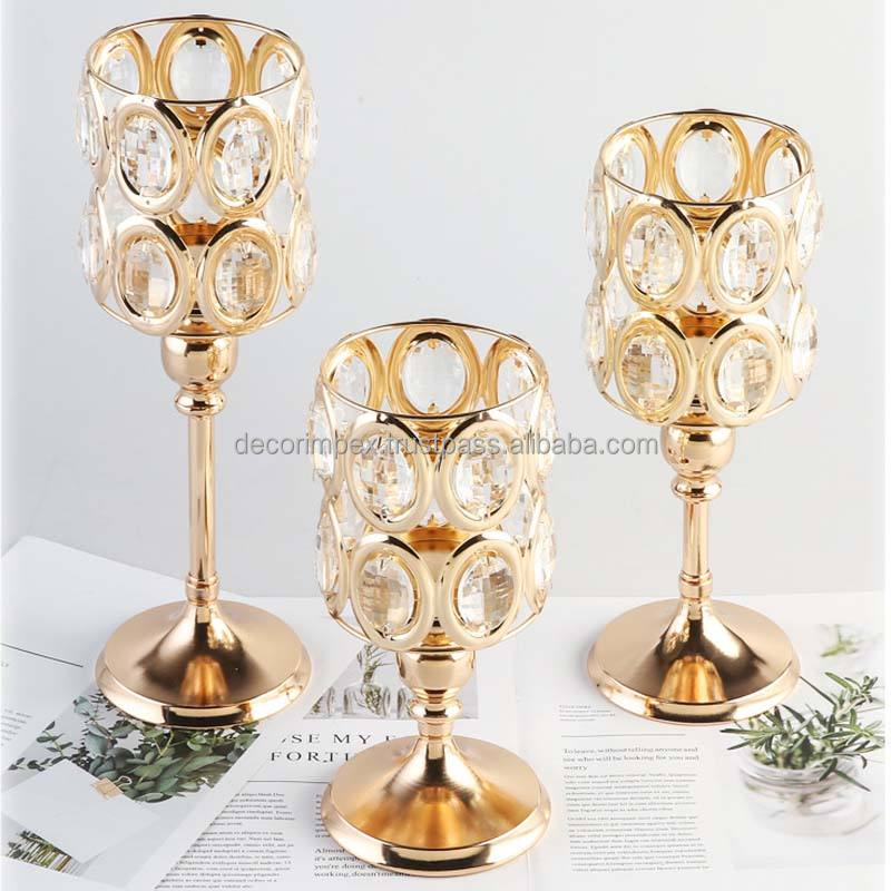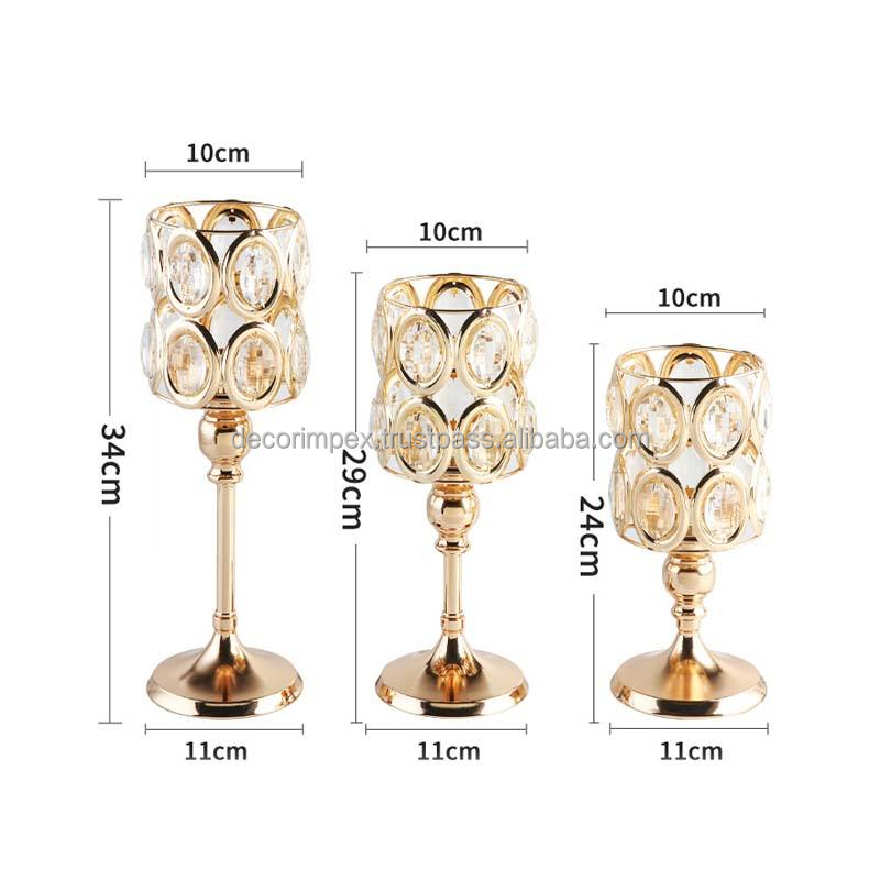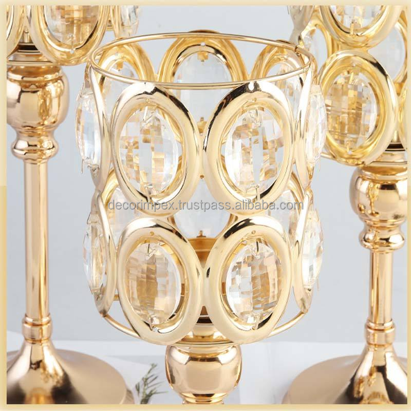 เชิงเทียนโลหะคริสตัลนอร์ดิกตกแต่งงานแต่งงานสีทองสำหรับวางบนโต๊ะในงานแต่งงาน