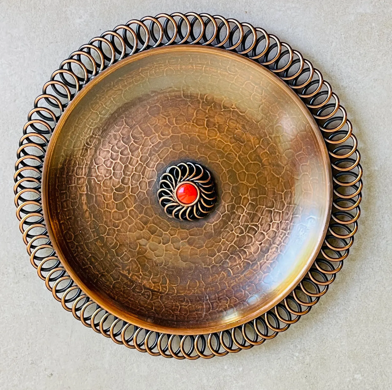 Hot Sale Charger Plates Antique Copper Finishing Dinner Chargers Platter Round Serving Plate Metal Serving Platter