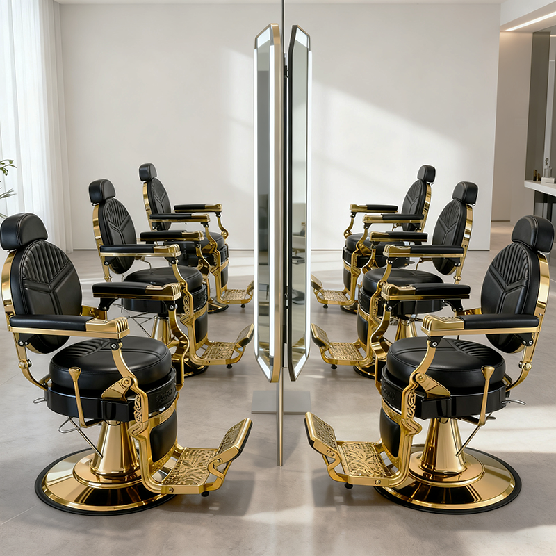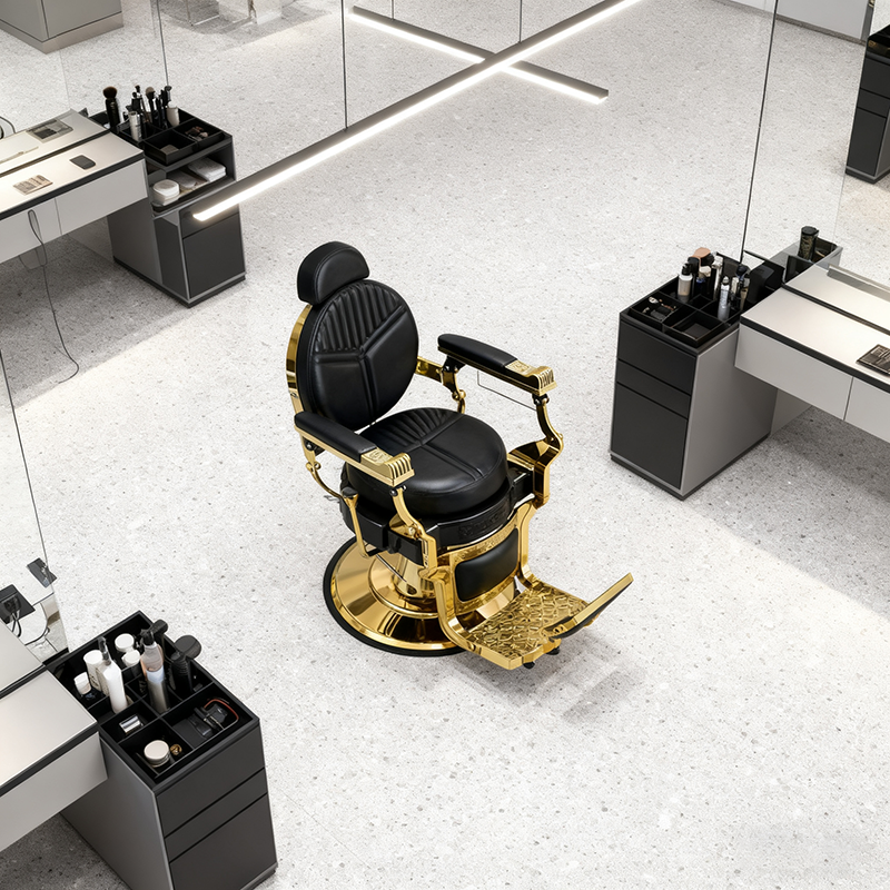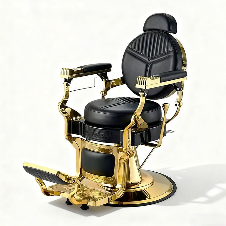 ขายดี ราคาถูก เก้าอี้ทำผมสำหรับร้านเสริมสวย สไตล์ผู้ชาย เก้าอี้ช่างตัดผมสุดหรู สีดำและทอง