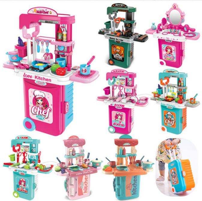 ของเล่นชุดครัวเด็ก ชุดทำอาหาร ของเล่นเสริมพัฒนาการ ชุดเครื่องครัวเด็กเล็ก กระเป๋าเดินทางสำหรับเล่นบทบาทสมมติ ลดราคา