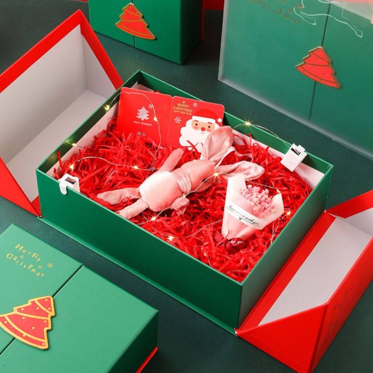 ชุดกล่องของขวัญกระดาษเคลือบคริสต์มาสขายดี-กล่องเปล่าสำหรับใส่ลูกกวาดเครื่องประดับต้นไม้และที่ใส่เงินสำหรับคริสต์มาสอีฟ