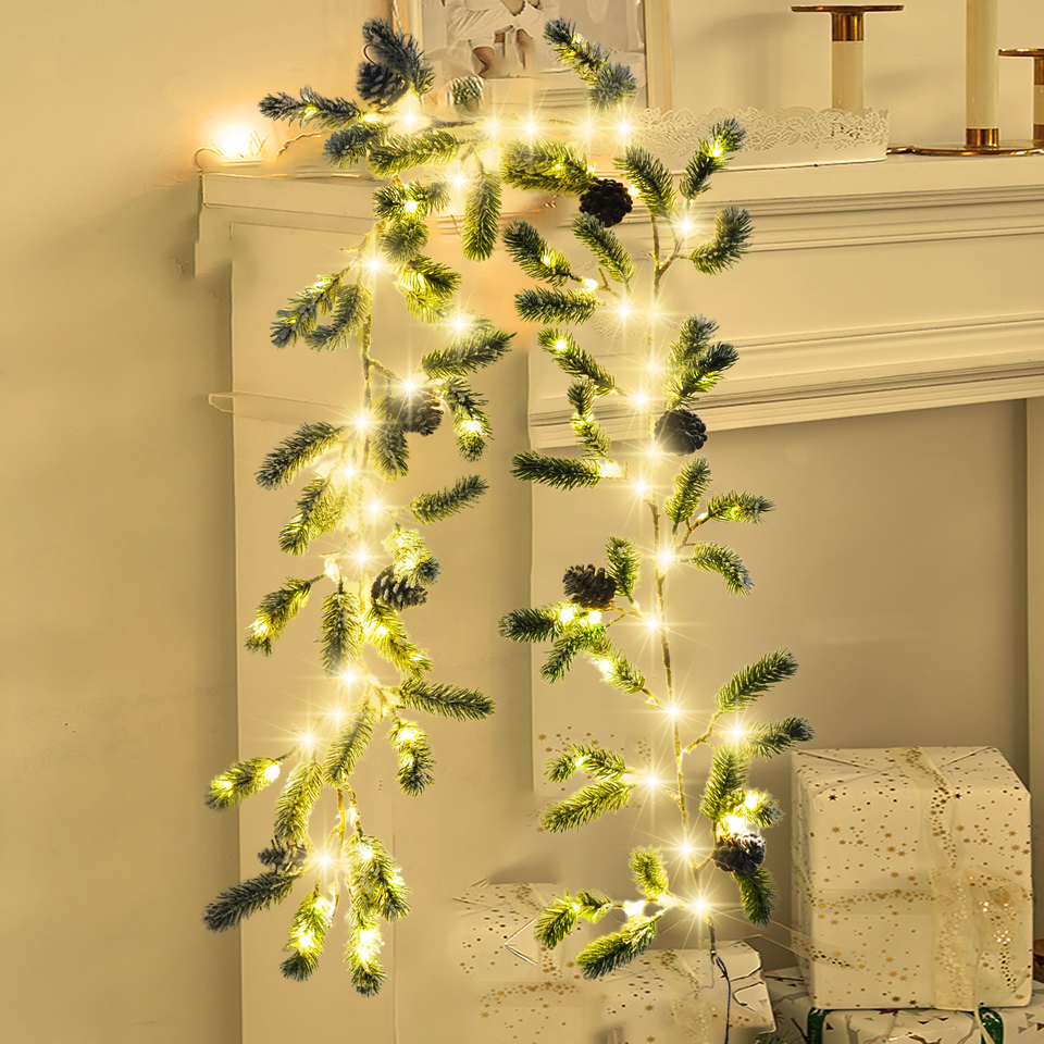 ขายร้อนตกแต่งคริสต์มาสแสงหวายแถบแสงเข็มสนและกรวยสนหิมะสําหรับห้องนอนบ้าน