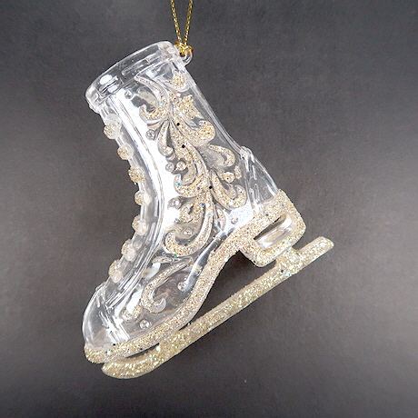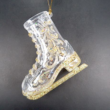 เครื่องประดับคริลิคสีทองแชมเปญตกแต่งปีใหม่3D รองเท้าสเก็ต