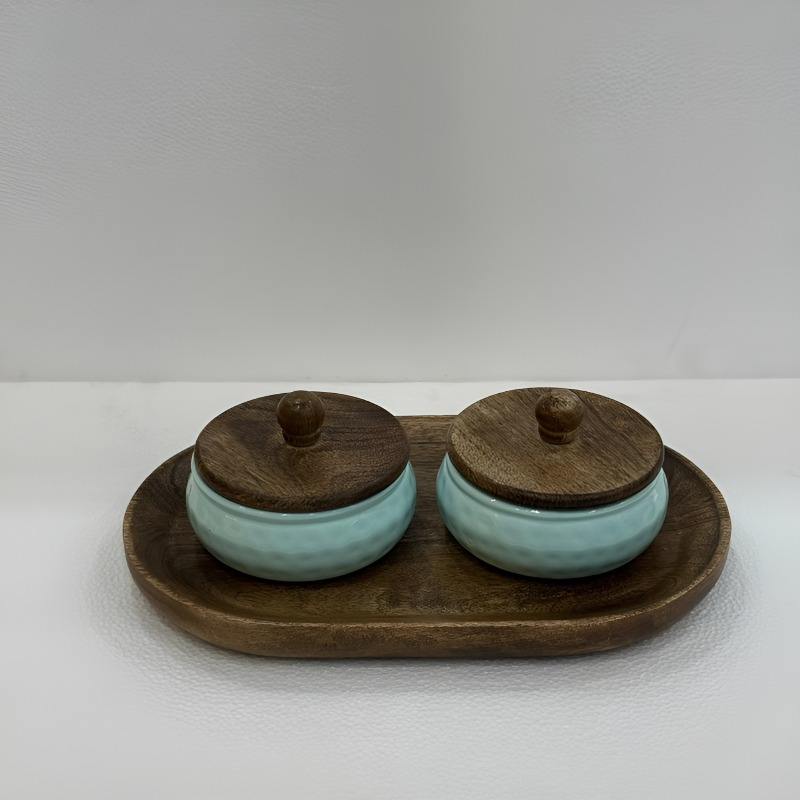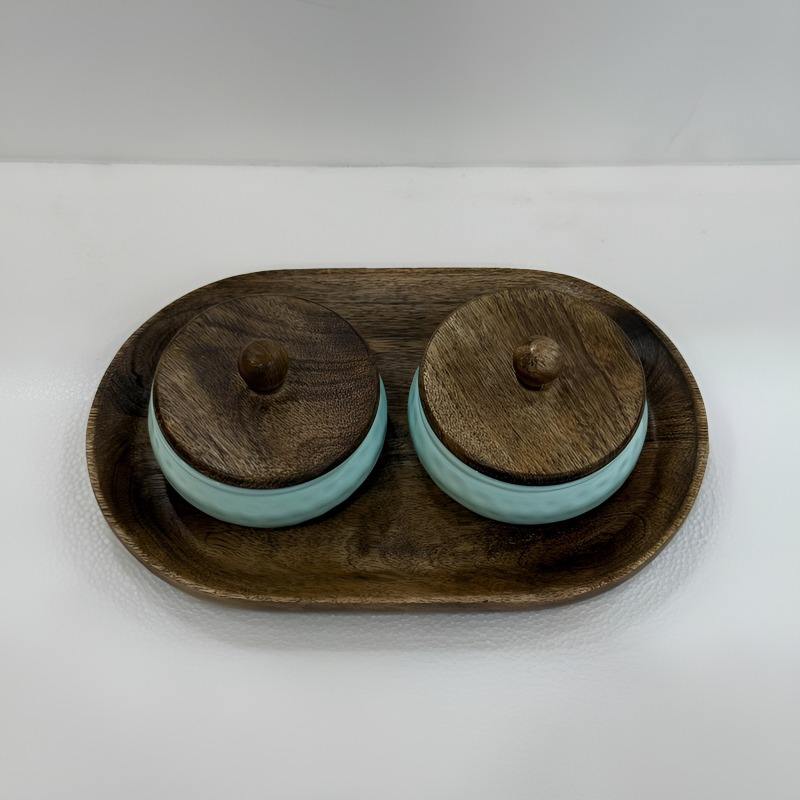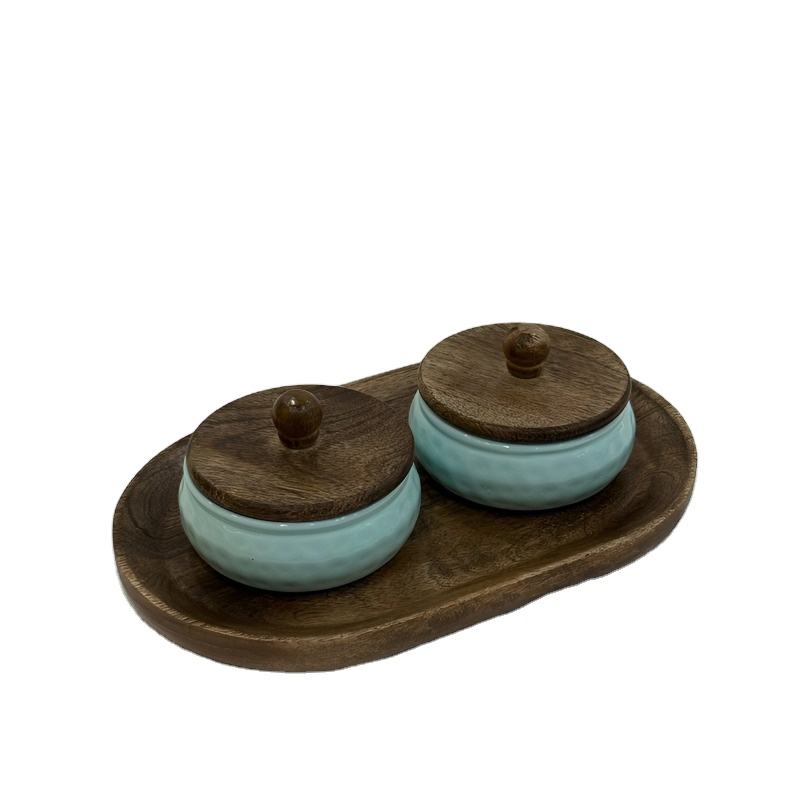 ชุดชามเหล็กเคลือบ2ใบพร้อมฝาไม้ถาดเสิร์ฟสำหรับงานแต่งงานและงานปาร์ตี้ดีไซน์คลาสสิก