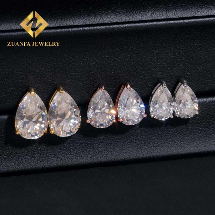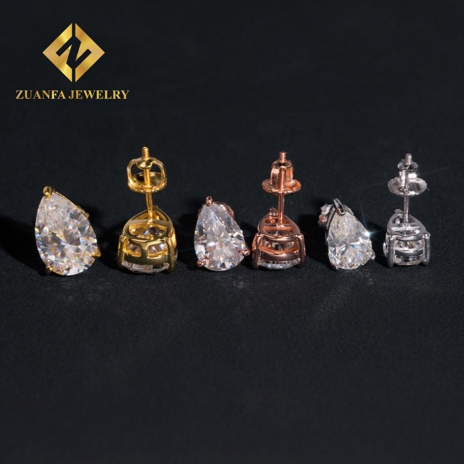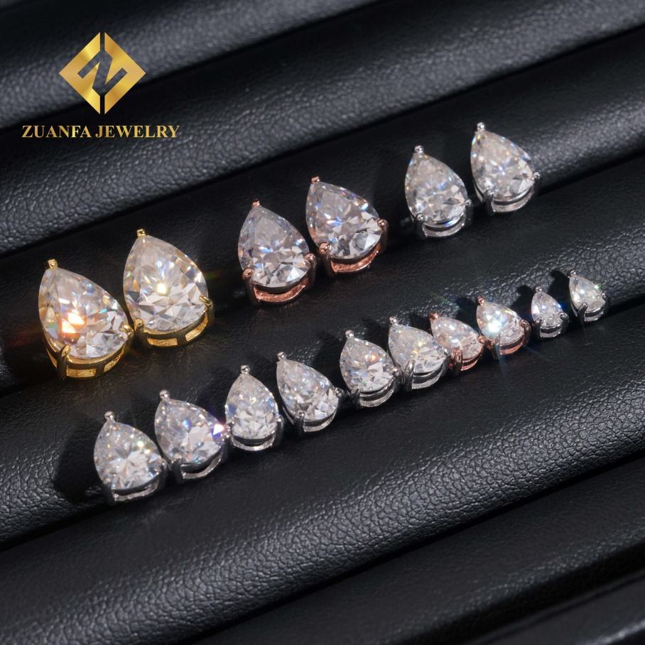 ต่างหูเพชรโมอิส925ชุบทองสเตอร์ลิงสีเงินแบบคลาสสิก