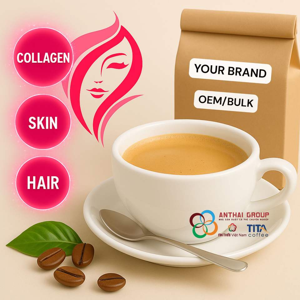 กาแฟคอลลาเจนสำหรับผู้หญิงกาแฟผสมน้ำตาลต่อต้านริ้วรอยฟังก์ชันทำให้ขาวขึ้นฉลากส่วนตัว