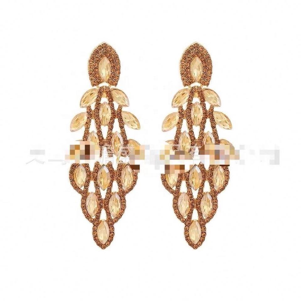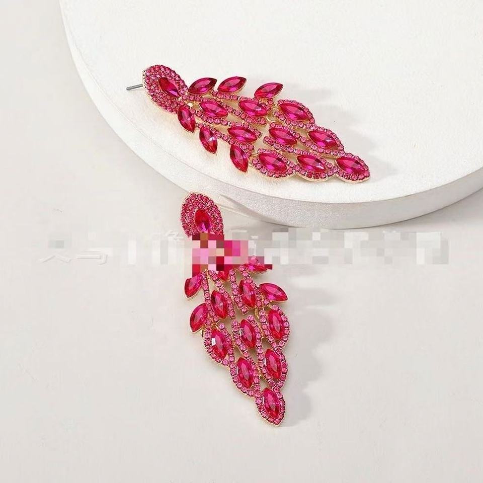 ต่างหูระย้าประดับเพชรเทียม ดีไซน์ใบไม้หลากสี ชุบทองคำขาว สำหรับงานเลี้ยงอาหารค่ำ แฟชั่นผู้หญิงสุดอินเทรนด์ ลดราคาพิเศษ