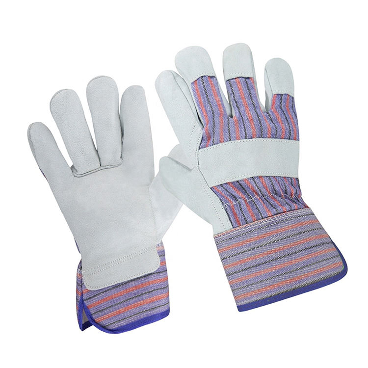 ถุงมือหนังวัวแยกแบบสั่งทำถุงมือทำงานเพื่อความปลอดภัยป้องกันการเจียระไนโลโก้ของตัวเองสำหรับการเชื่อมอุตสาหกรรมอื่นๆ