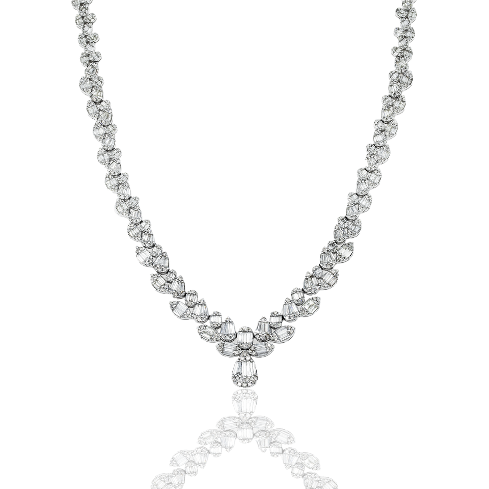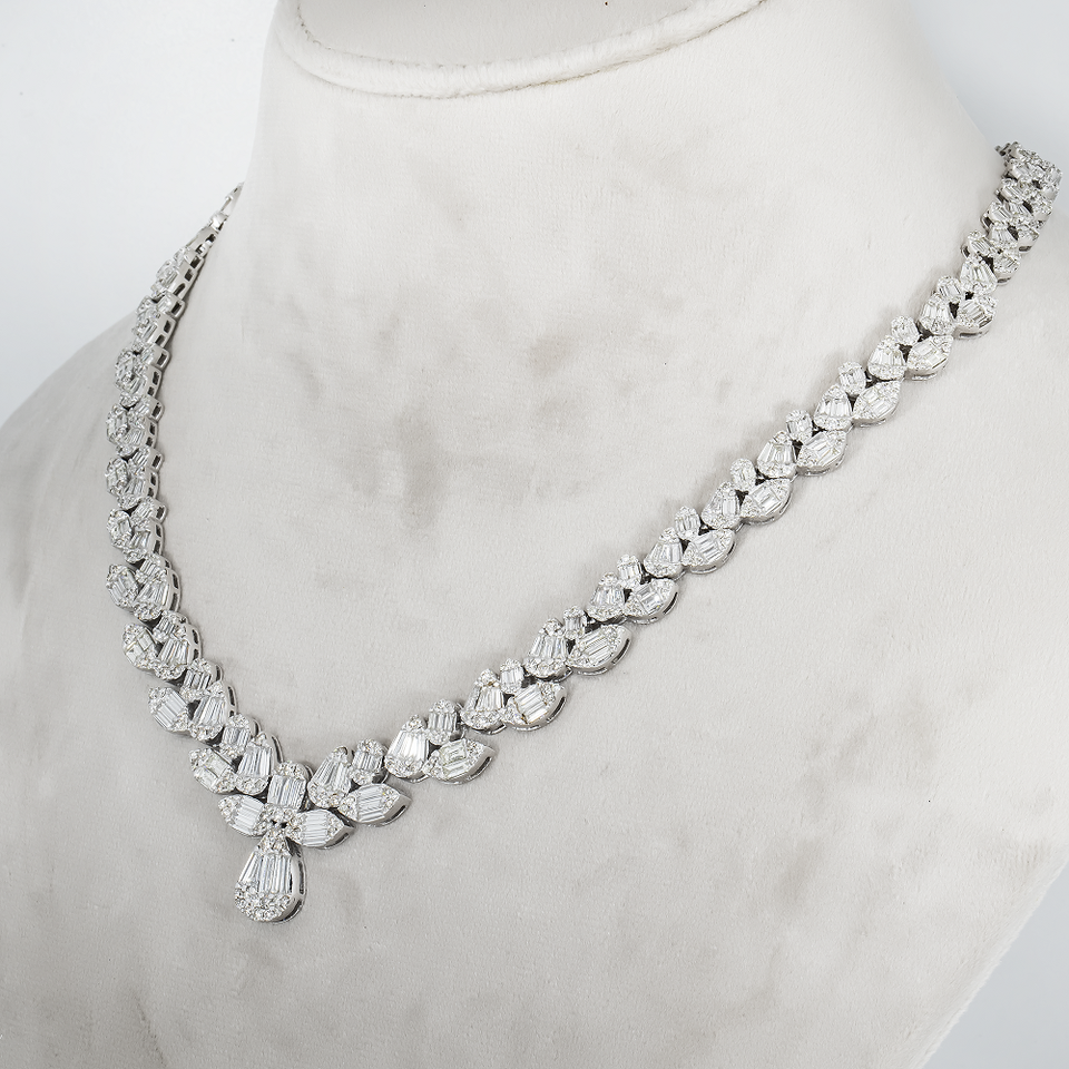 สร้อยคอเพชรทรงวีทองคำขาว 14K งานสั่งทำพิเศษสำหรับงานแต่งงาน ลดราคาสุดคุ้ม