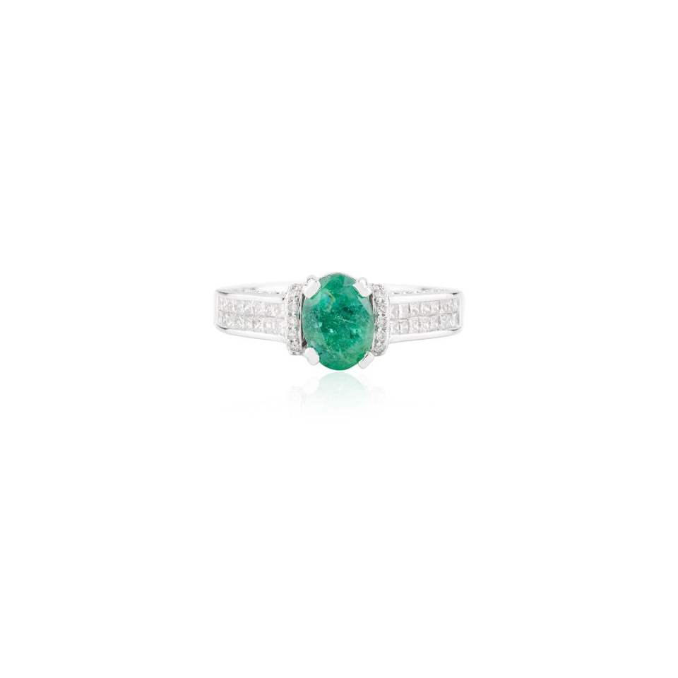 แหวนหมั้นสีทองขาว18K สำหรับผู้หญิงแหวนเพชรสีธรรมชาติทรงรีตัดมรกตและเพชรตามสั่งสำหรับงานแต่งงาน