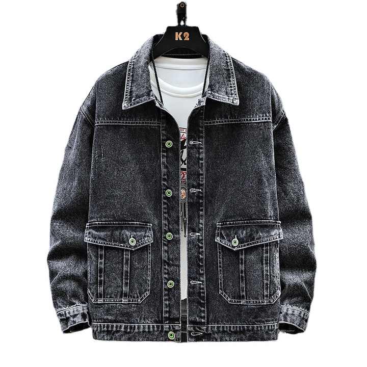 Hot Sale Custom Black Slim Casual Wearing Retro Style Turn Down Collar Oversized Vintage Washed Denim Men's Jackets
