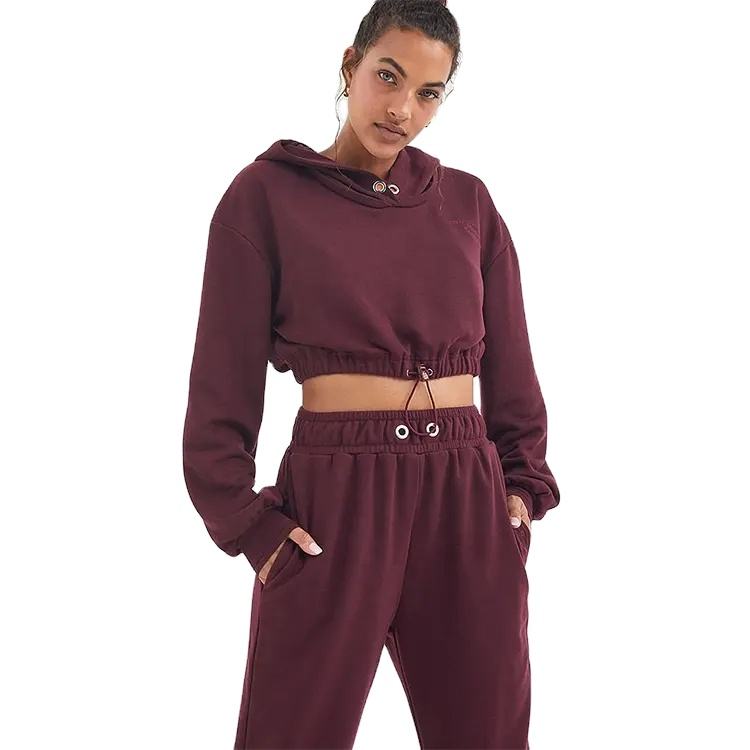 ชุดวอร์มสำหรับผู้หญิงเสื้อครอปแบบไม่มีสายติดโลโก้เสื้อครอป