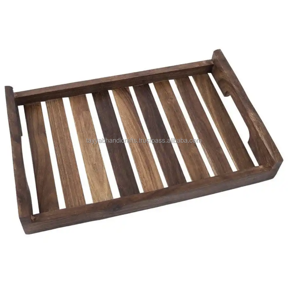ถาดเสิร์ฟทำจากไม้ทรงสี่เหลี่ยมผืนผ้าพร้อมที่จับสำหรับผู้ส่งออกจากอินเดียดีไซน์ตามสั่ง