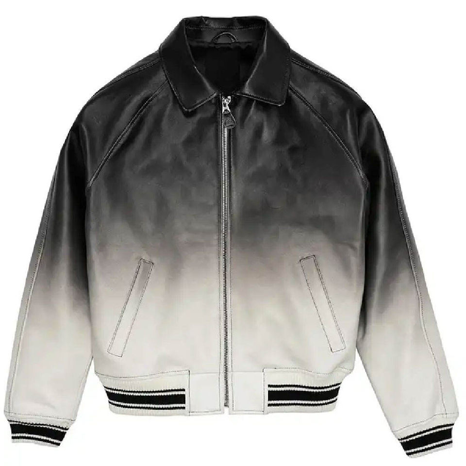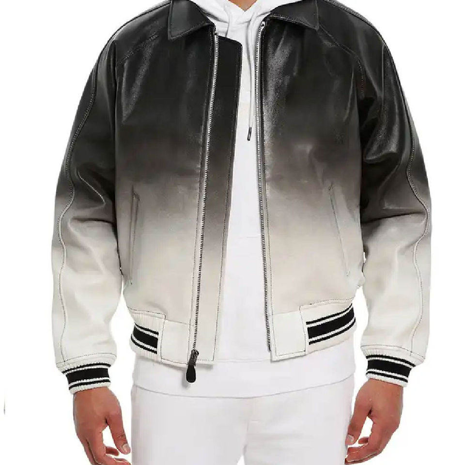 แจ็คเก็ตบอมเบอร์หนังแท้ผู้ชาย หนังแกะด้านหน้า ผ้าแคนวาส ปักลายตามสั่ง สไตล์เลตเตอร์แมน ลดราคาพิเศษ