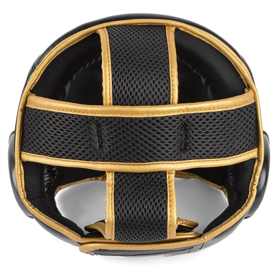 หมวกกันน็อคชกมวยสำหรับผู้ใหญ่, หมวกสำหรับใส่ป้องกันใบหน้าทำจากหนังสีดำทองออกแบบโลโก้ได้ตามต้องการ