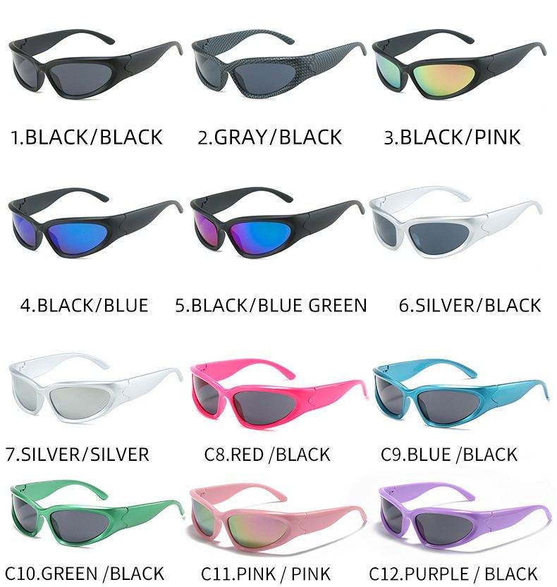 แว่นกันแดดกีฬาปั่นจักรยานเลนส์กระจกสีสันสดใสสำหรับผู้ชายและผู้หญิง ลดราคาพิเศษ รับทำโลโก้ ป้องกันรังสียูวี 400 สไตล์ Y2K พังก์