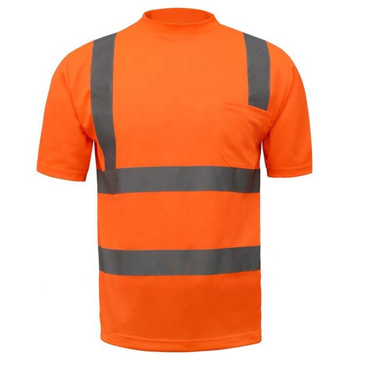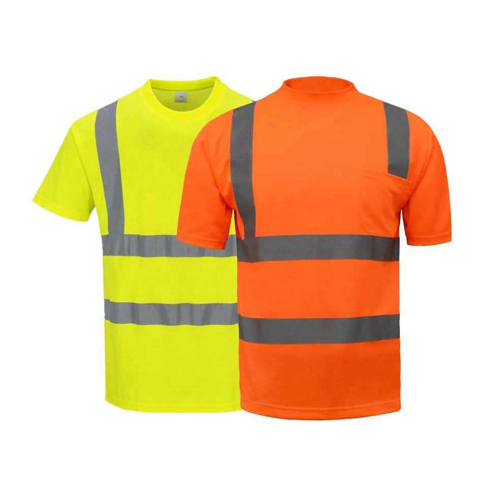 เสื้อยืดเรืองแสงสำหรับผู้ชายเสื้อยืดเพื่อความปลอดภัยในการทำงานสำหรับใส่ทำงานป้ายป้องกันทำจากโพลีเอสเตอร์ออกแบบโลโก้ได้ตามที่ต้องการ