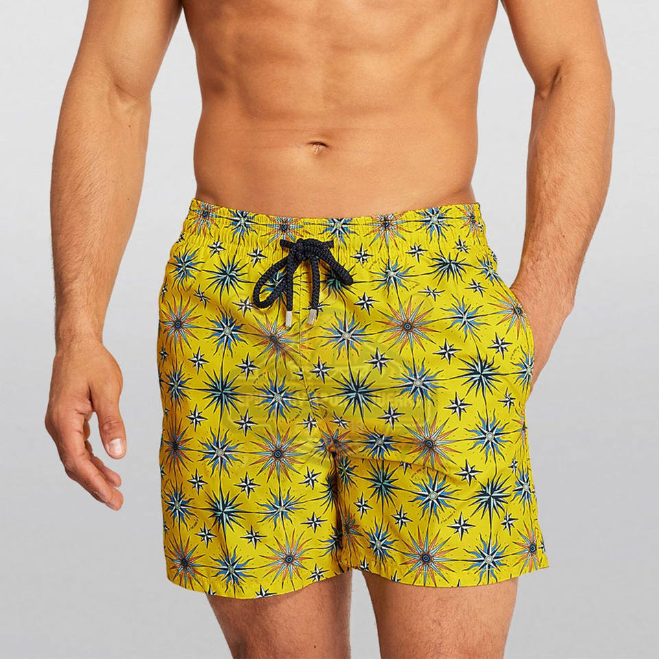 กางเกงขาสั้นชายหาดของผู้ชายกางเกงขาสั้นชายหาดผ้าฝ้าย100% สไตล์ลำลองแบบสีทึบออกแบบได้ตามต้องการ