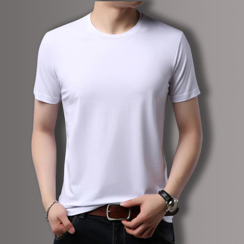 เสื้อยืดคอกลมทรงสลิมฟิตแบบลำลองผลิตตามสั่งสีล้วนวัสดุโพลีเอสเตอร์/ คอตตอนไม่มียี่ห้อสำหรับการสั่งซื้อจำนวนมาก