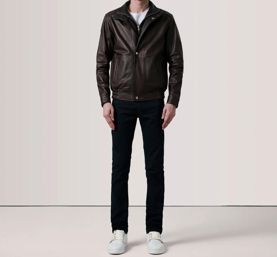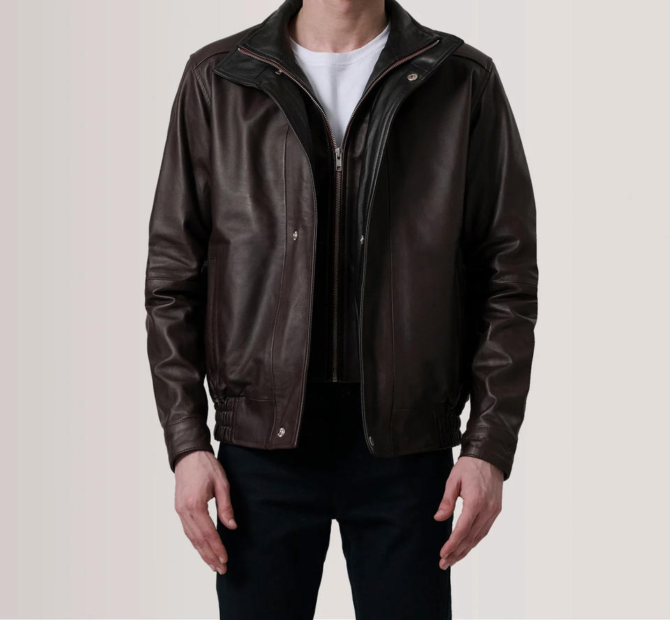 แจ็คเก็ตหนังแท้สีดำสำหรับผู้ชาย สไตล์วินเทจ แต่งลายขาดๆ แบบนักขี่มอเตอร์ไซค์ ลดราคาพิเศษ