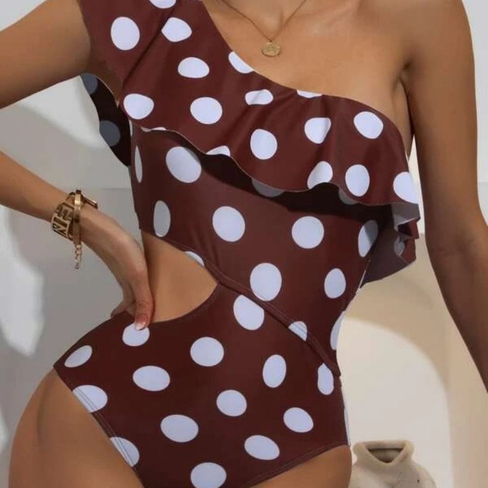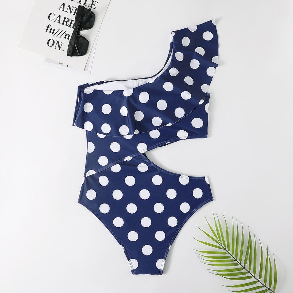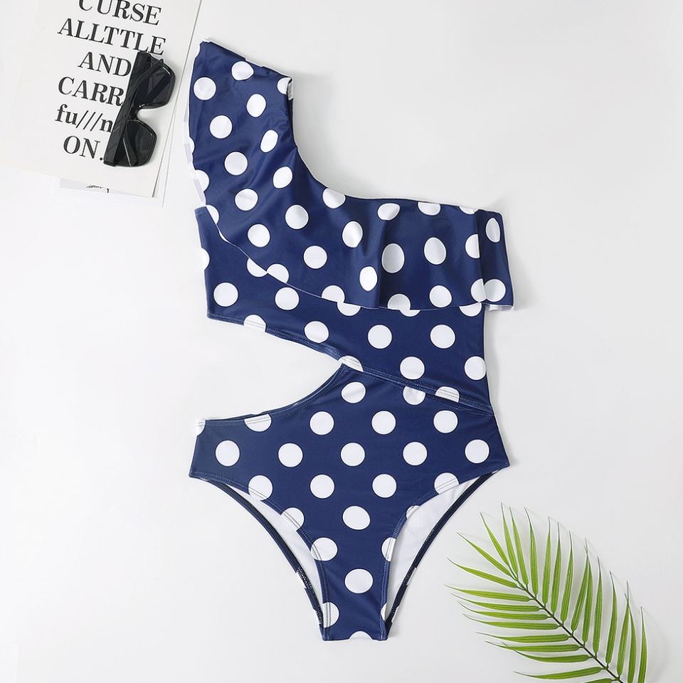 ชุดว่ายน้ำวันพีซแบบสั่งทำสำหรับผู้หญิง ลดราคาสุดฮอต ลายจุดเซ็กซี่ พร้อมระบายชายหาด