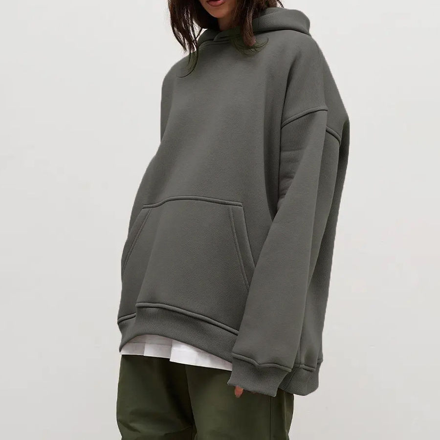 เสื้อฮู้ดดี้ผู้หญิงไซส์ใหญ่แบบมีซับในสำหรับฤดูหนาว สไตล์ลำลอง แขนยาว ทรงหลวม ไหล่ตก ลดราคาพิเศษ