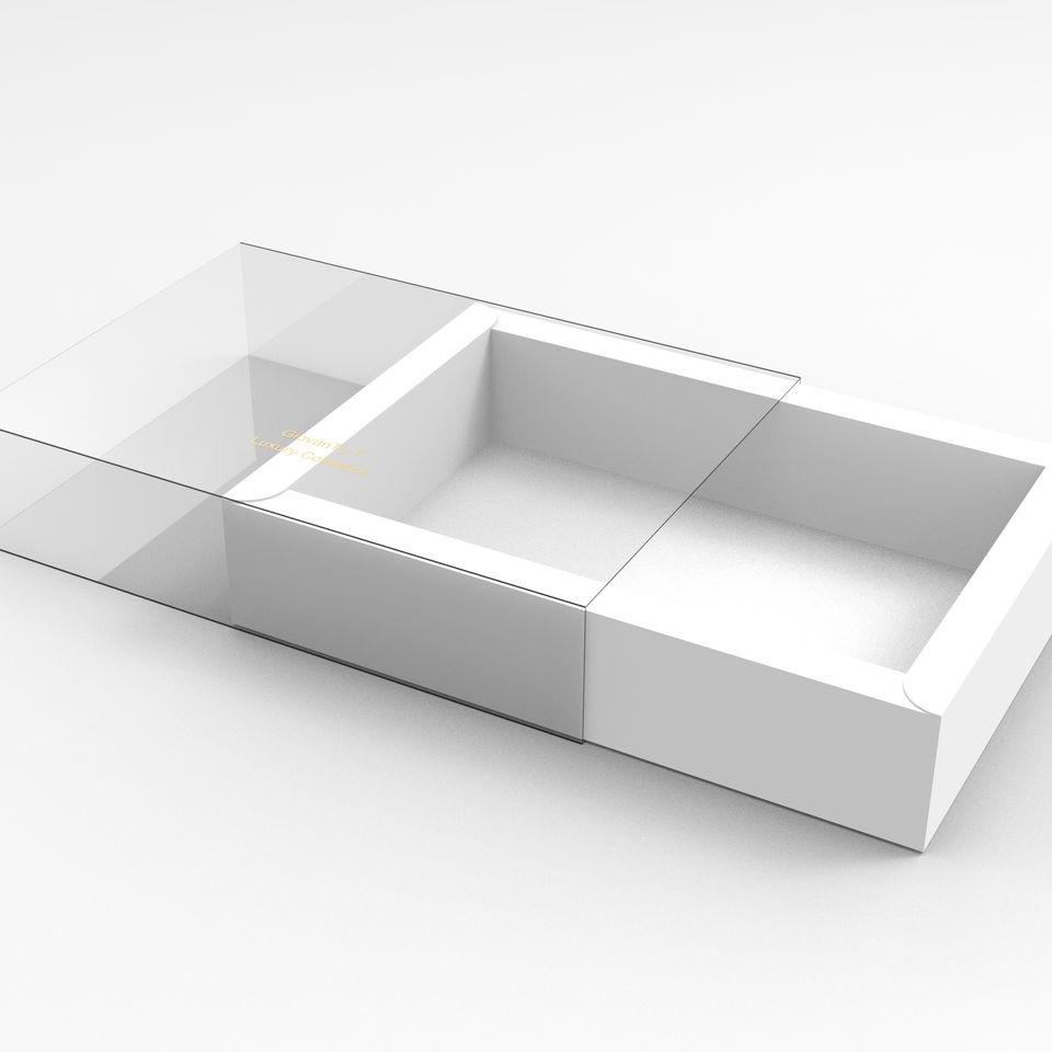 กล่องกระดาษสีขาวแบบเลื่อนพร้อมแขน PVC กล่องบรรจุภัณฑ์กระดาษแบบกำหนดเอง
