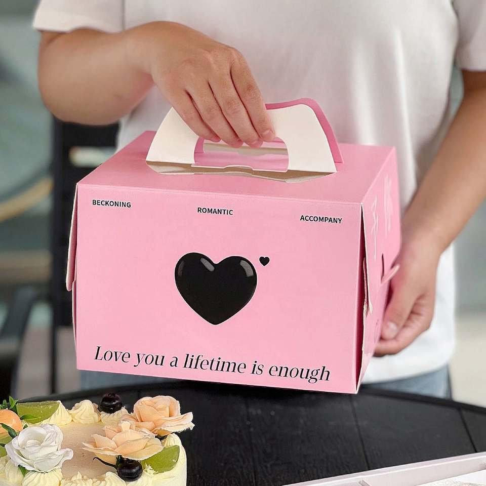 กล่องเค้กพิมพ์ลายตามสั่ง ลดราคาพิเศษ พร้อมหูหิ้ว ผลิตจากกระดาษอาหารย่อยสลายได้ เหมาะสำหรับร้านเบเกอรี่ งานแต่งงาน งานเลี้ยง ขนมหวาน กลับบ้าน