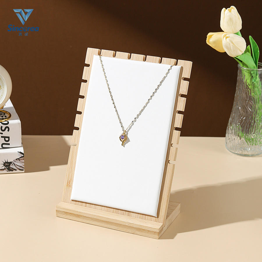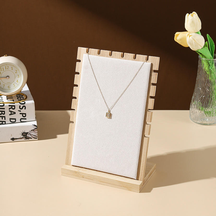 ขาตั้งโชว์เครื่องประดับ สร้อยคอ กำไลข้อมือ ดีไซน์สี่เหลี่ยม ทำจากไม้ไผ่ หุ้มหนังกลับ/หนัง PU สีดำ หรูหรา ลดราคาพิเศษ