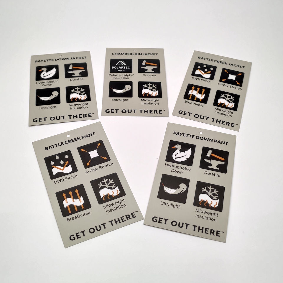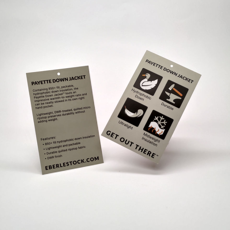 ป้ายแขวนทำจากกระดาษแข็งเคลือบด้านโลโก้บัตรข้อมูลแบรนด์